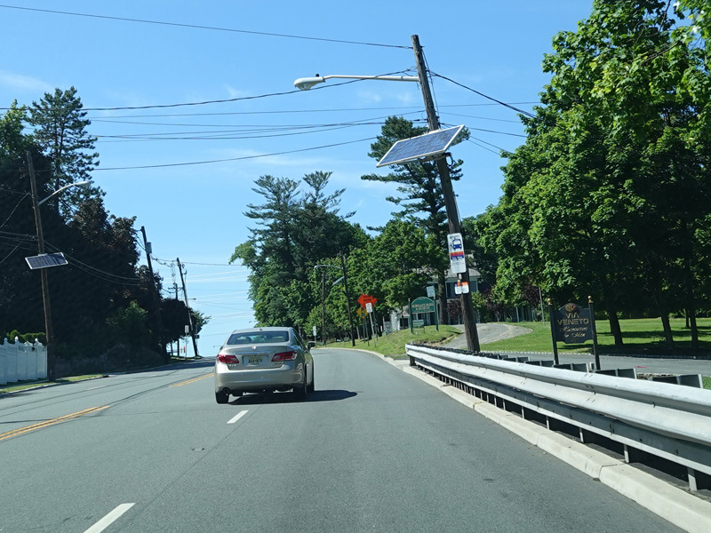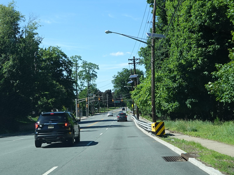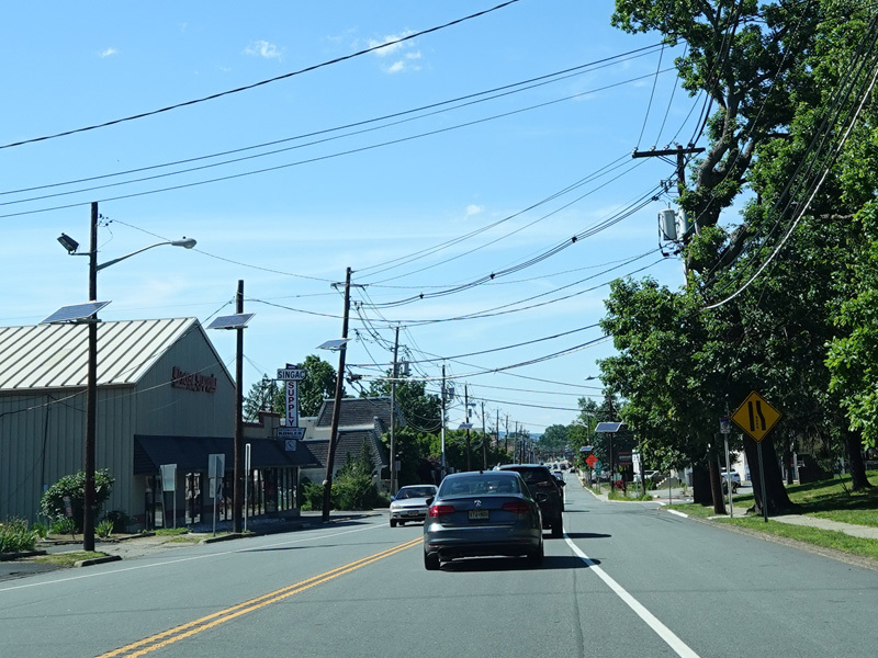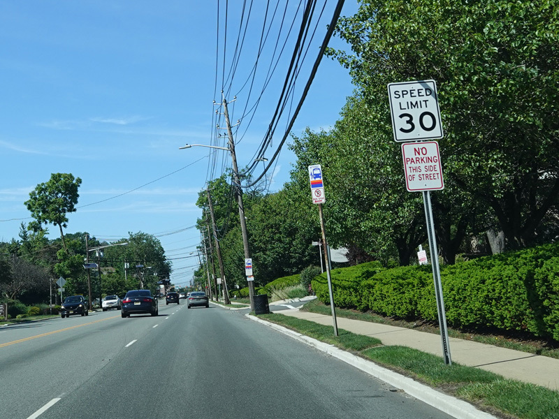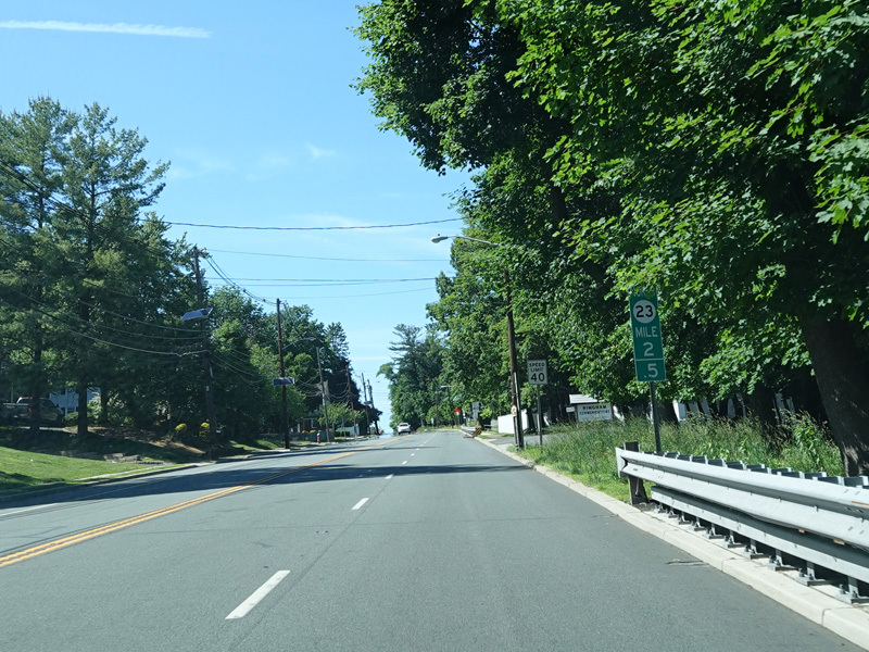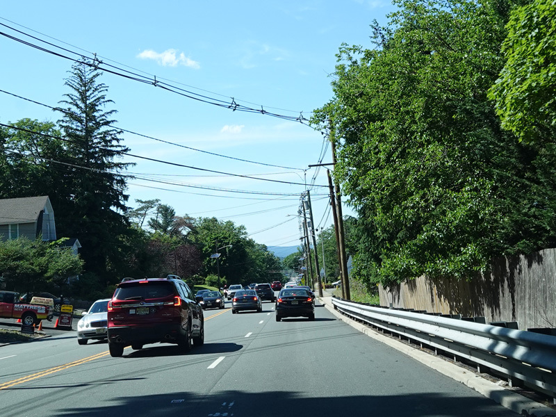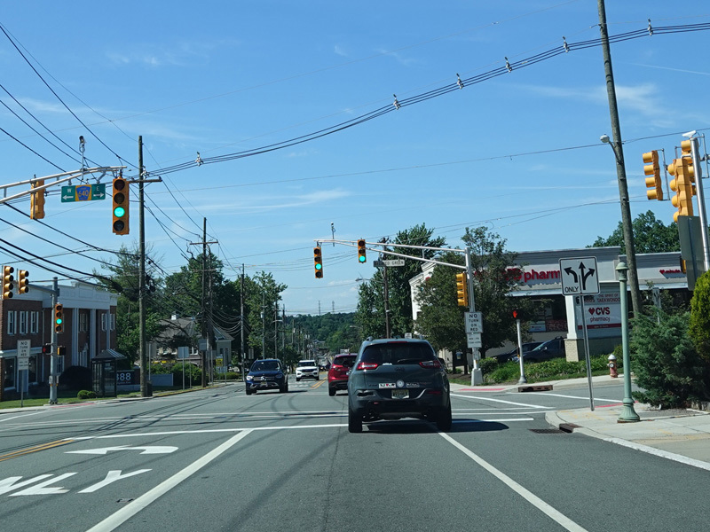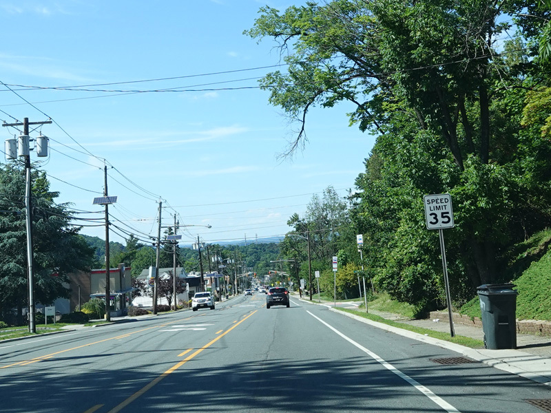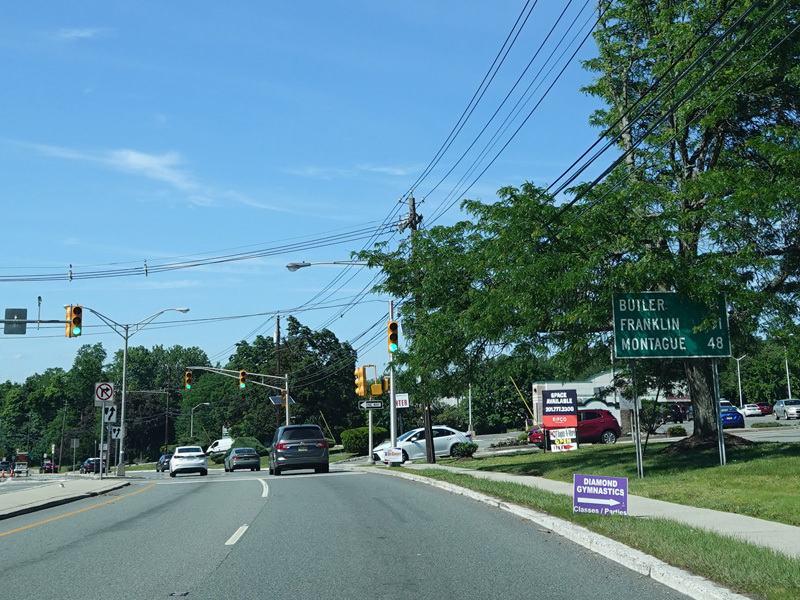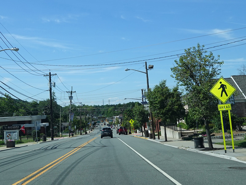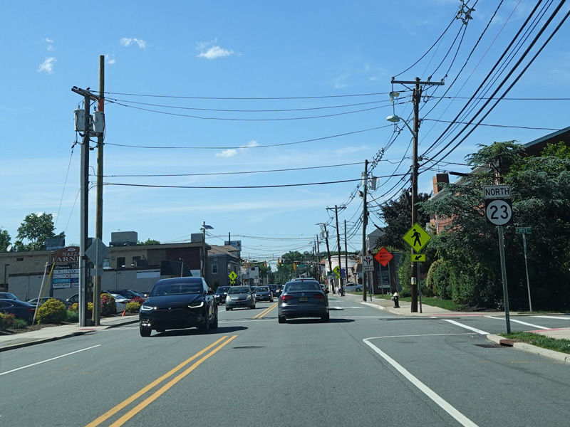 Newark Pompton Turnpike runs north through Little Falls as a two-lane undivided road.