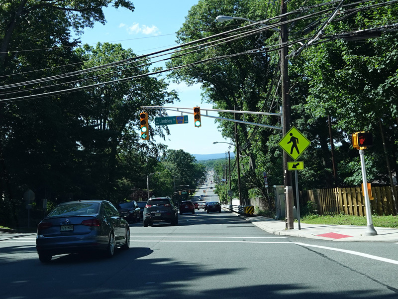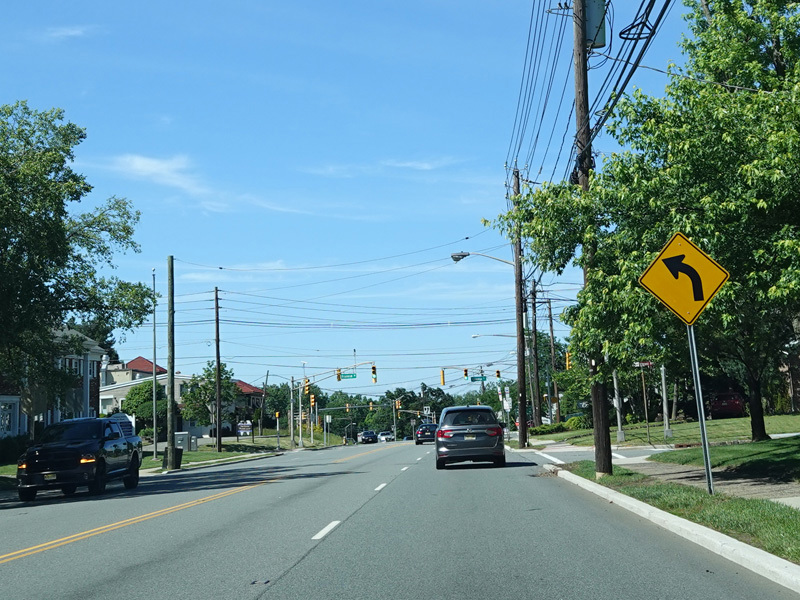 Pompton Avenue widens to four lanes. There are traffic lights at Fairview Avenue (CR 637), Commerce Road, Stevens Avenue (CR 616), Lindsley Road (CR 604), and Montclair Avenue.