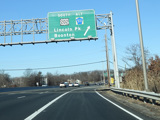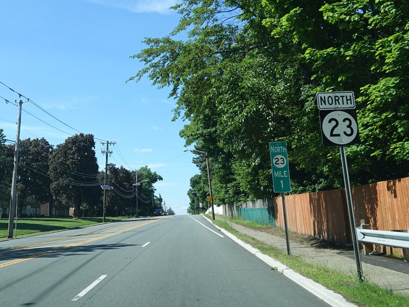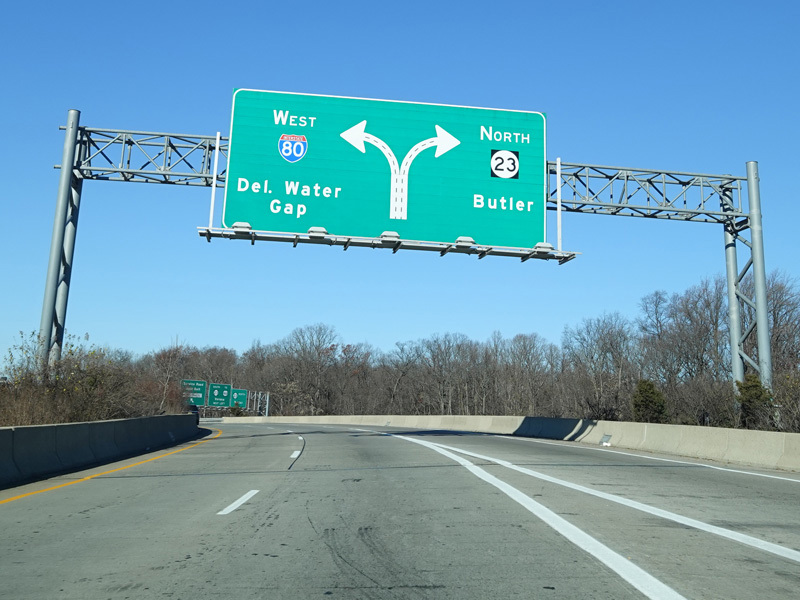 NJ 23 curves to the east and then back to the north. There are exits for US 46 and the Bergen-Passaic Expressway (I-80).