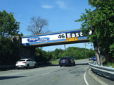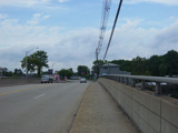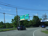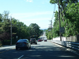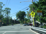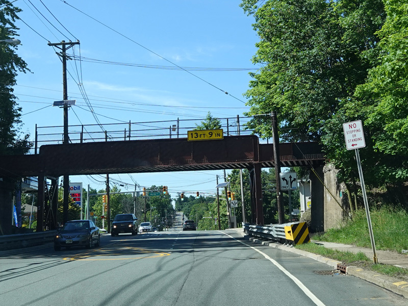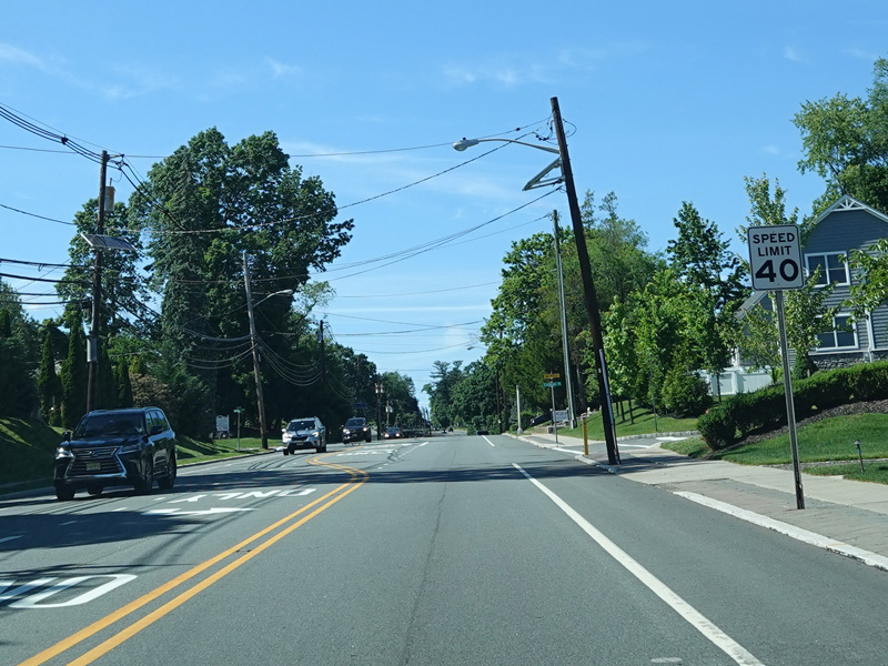 The road widens to four lanes. There is a bridge over the Passaic River.
