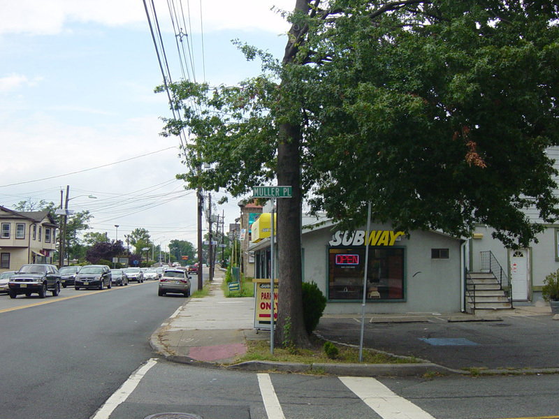 Pompton Avenue continues north as a two-lane undivided road. There are traffic lights at Bowden Road, Church Street, and Myrtle Avenue.