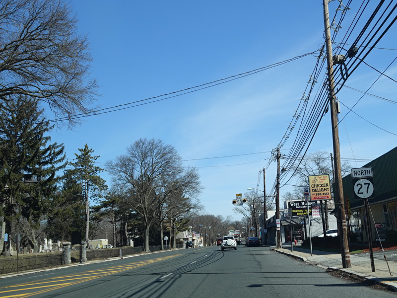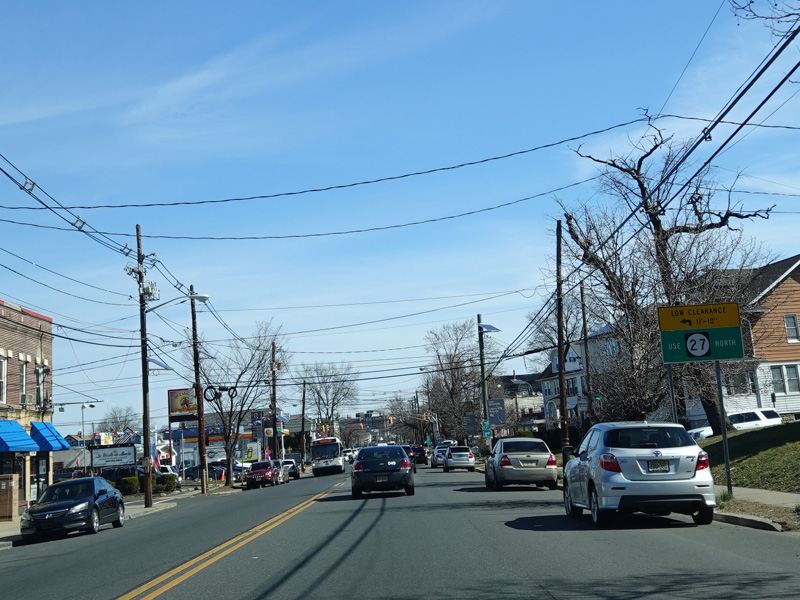 On the other side of the bridge, there is a traffic light at Westfield Avenue. Turn right to stay on NJ 27. Turn left for NJ 28. There is no signage for either state route here, making it easy for motorists who don't know where they're going to get lost.