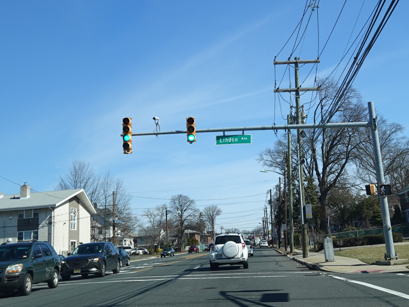 St. Georges Avenue continues north through Linden. There are traffic lights at Ercama Street, Hollywood Road, Dewitt Street, Summit Terrace, Summit Street, and Ainsworth Street.