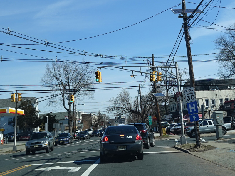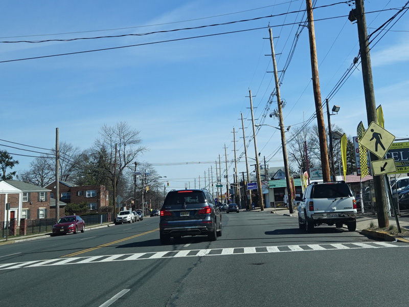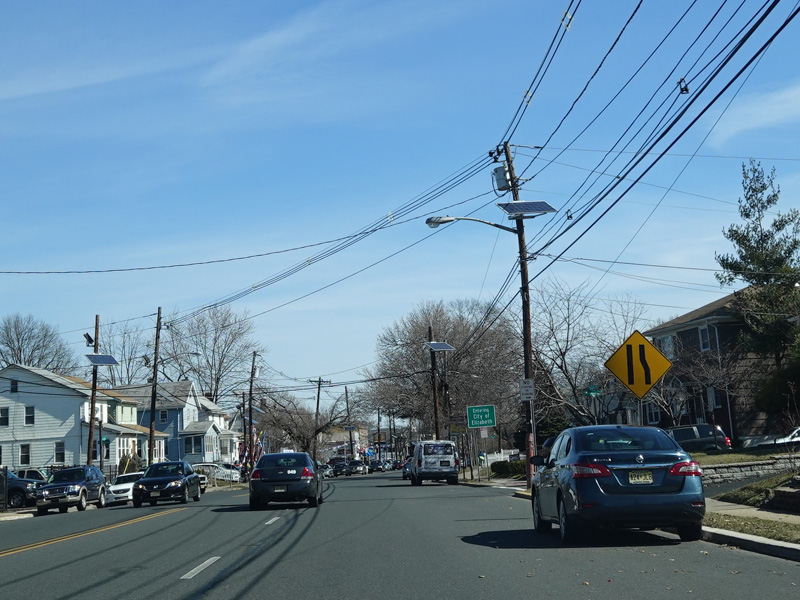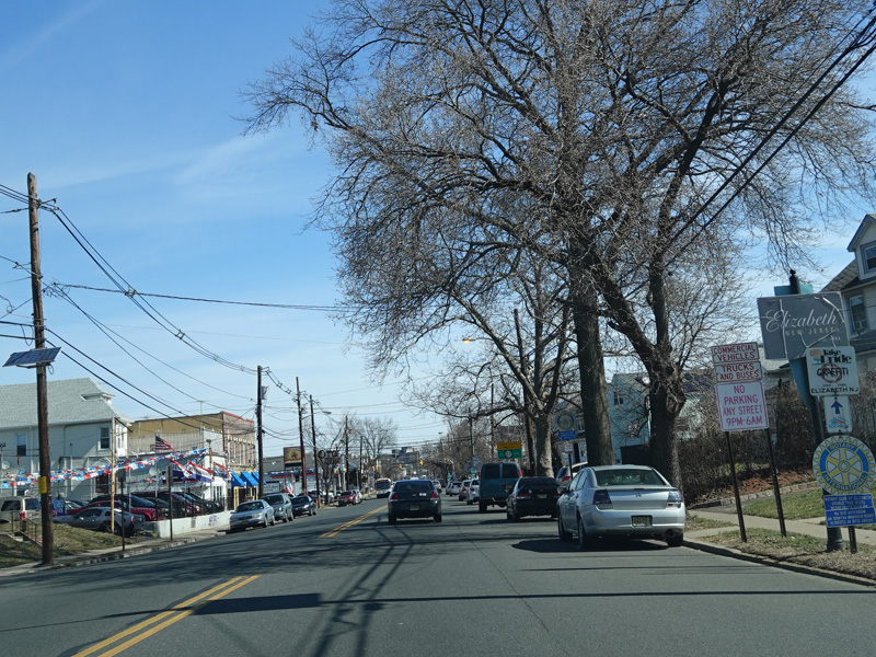 Welcome to the City of Elizabeth! St. Georges Avenue changes names to become Rahway Avenue and narrows down to two lanes at the city line.
