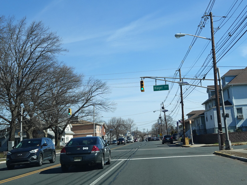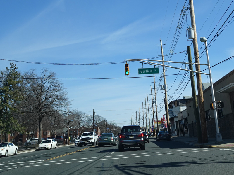 St. Georges Avenue continues north to Elizabeth. There are traffic lights at Charles Street, Frank Street, Chandler Avenue, Cranford Avenue, Drake Avenue, Garfield Street, Adams Street, Park Avenue, and Hagel Avenue.