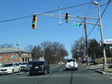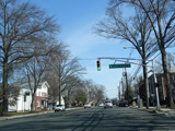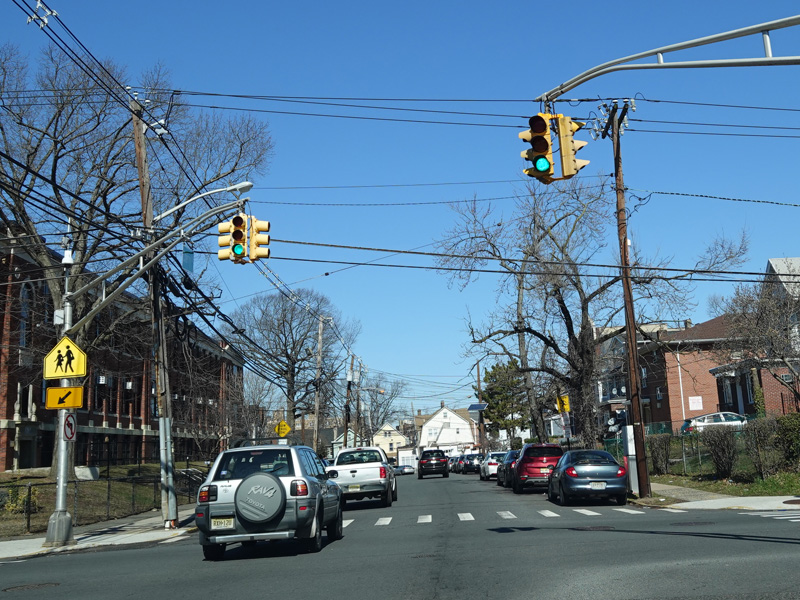 Rahway Avenue becomes a one-way street in the other direction at this traffic light. All vehicles must turn left onto Cherry Street to stay on NJ 27. There is no route signage.