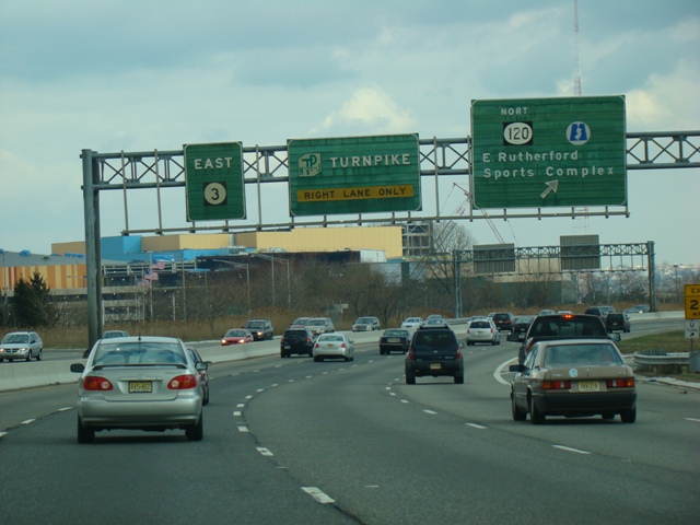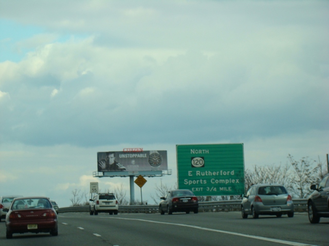 There is an exit for NJ 120 north, followed by an exit for the New Jersey Turnpike (I-95).
