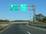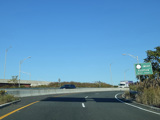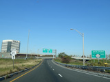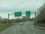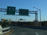 The ramp onto NJ 3 from NJ 495 splits into express and local lanes. The express lanes lead onto the highway itself, while the local lanes lead onto the service road.