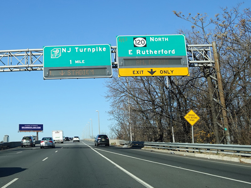 There is a small bridge over the Hackensack River, followed by an exit for NJ 120 north.