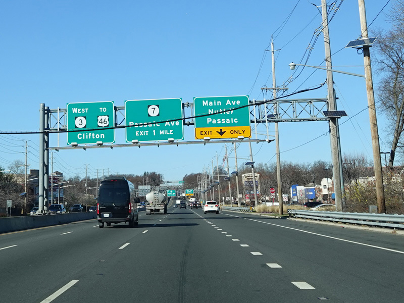 There is an exit for Main Avenue (CR 601), followed by an exit for Passaic Avenue (NJ 7).
