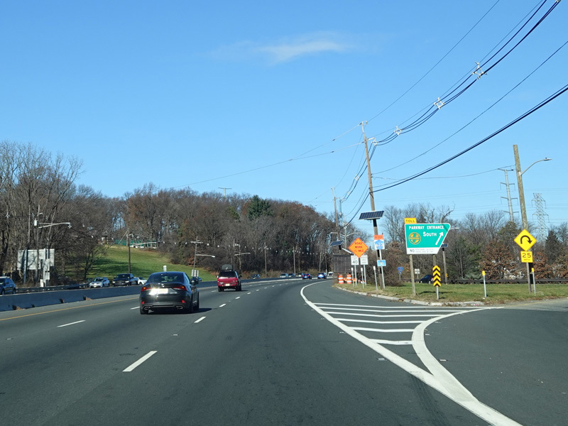 There are exits for the Garden State Parkway (NJ 444) and Broad Street (CR 509).
