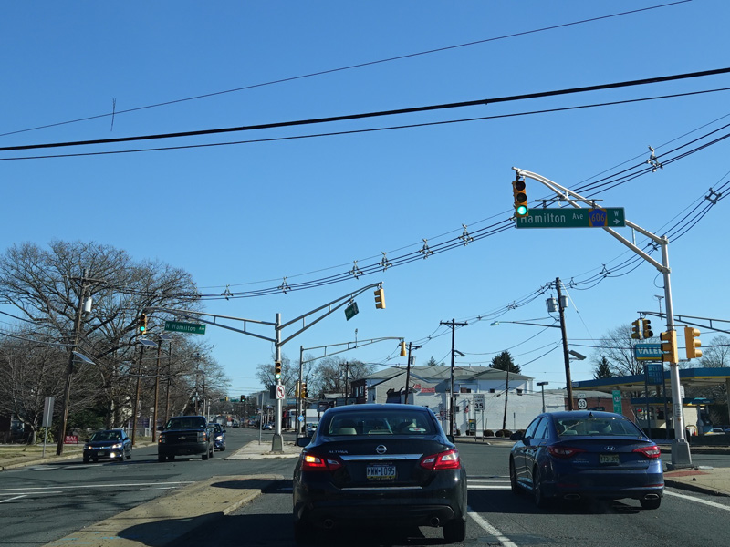 There are traffic lights at Hamilton Avenue (CR 606) and Concord Avenue.