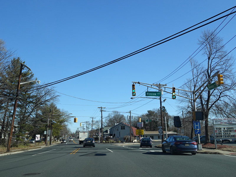 There is a traffic light at Winslow Avenue. Immediately thereafter, turn right to stay on NJ 33. Nottingham Way continues straight ahead as CR 652.