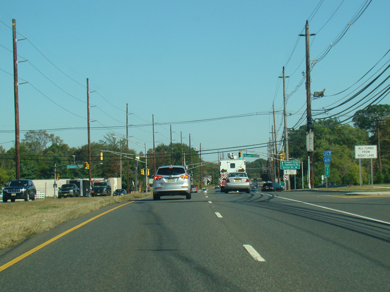 There is a traffic light with jughandles at Perrineville Road (CR 625) and Prodelin Way.