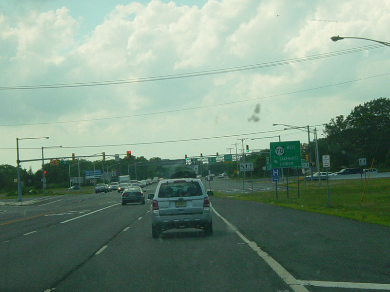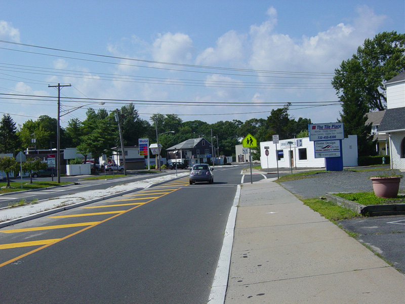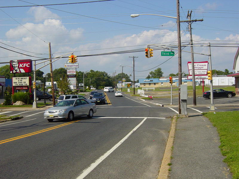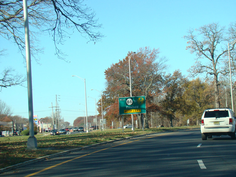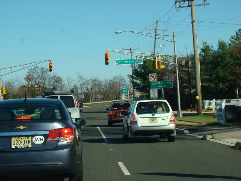 North of NJ 33, the road narrows down to two lanes again. There are traffic lights at Heck Avenue, West Lake Avenue, and Bangs Avenue (CR 17).