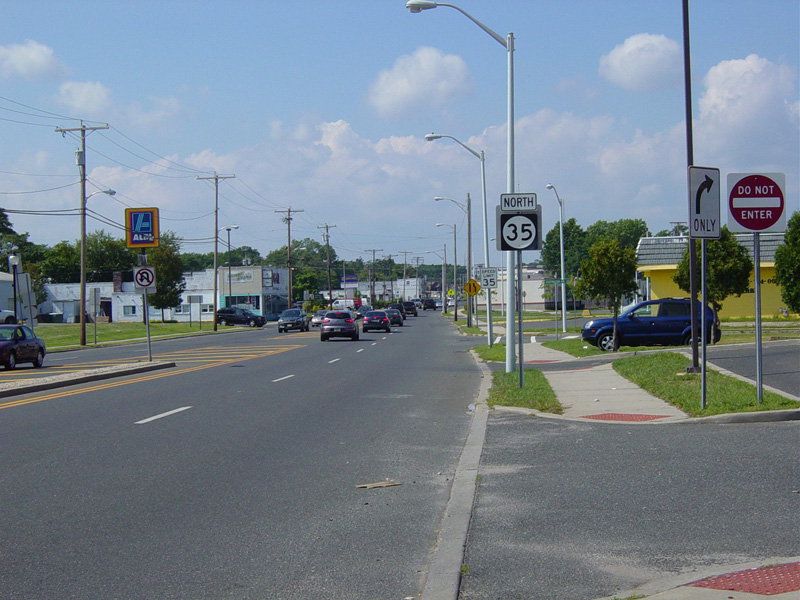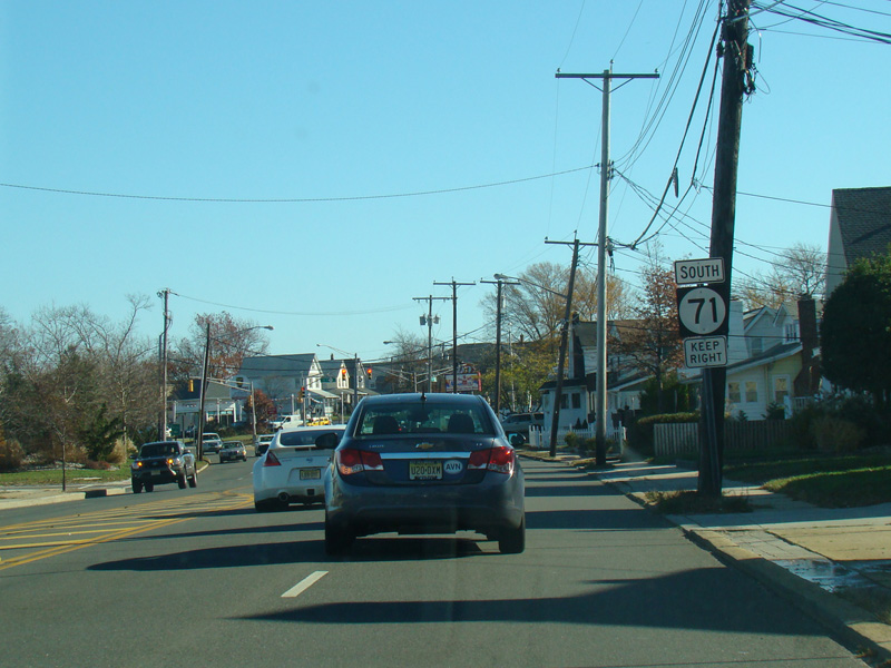 There is a traffic light at H Street (NJ 71). Turn right to go south. Northbound NJ 71 is multiplexed with NJ 35 straight ahead.