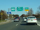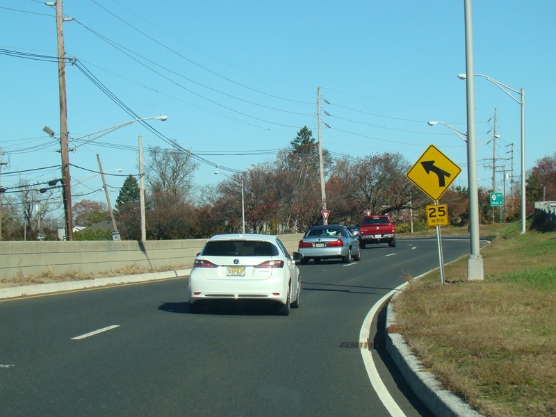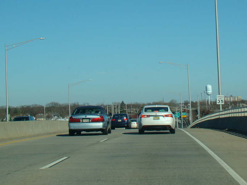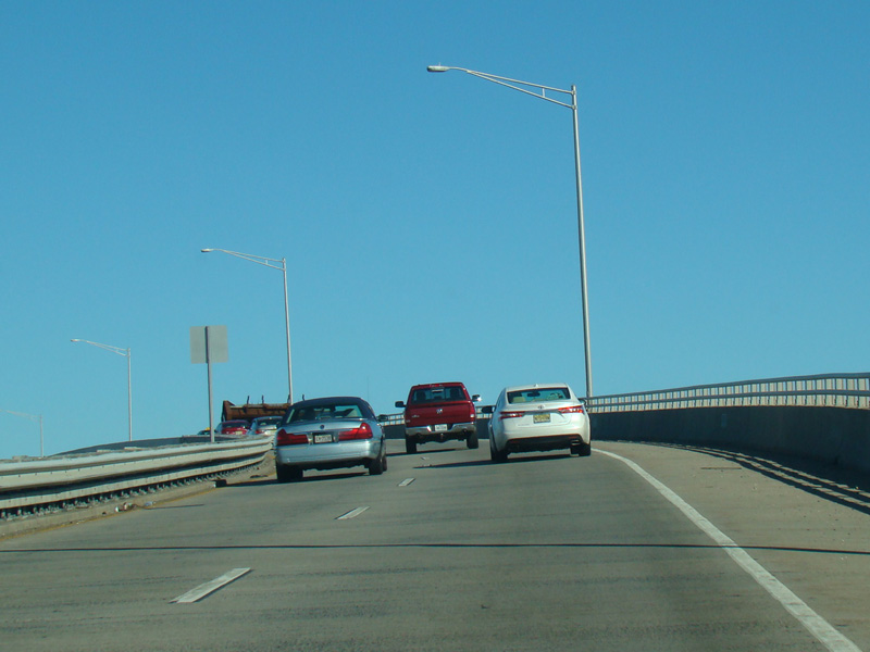 On the other side of the bridge, there is an exit on the left for Seaview Circle and an exit on the right for Bradley Beach.