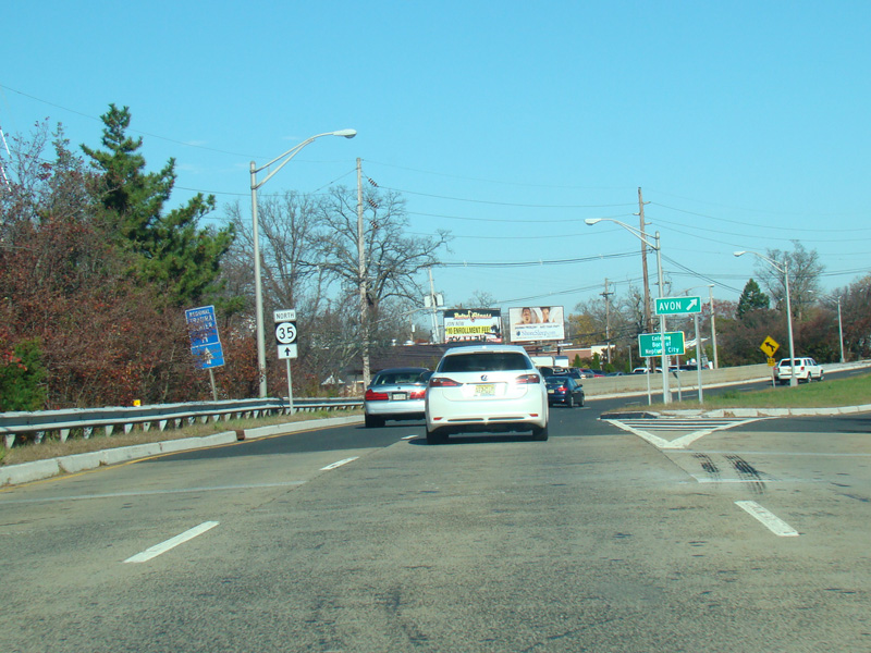 North of the split, NJ 35 is a divided road for a short distance, and then the divider ends. There is a traffic light at Third Avenue.