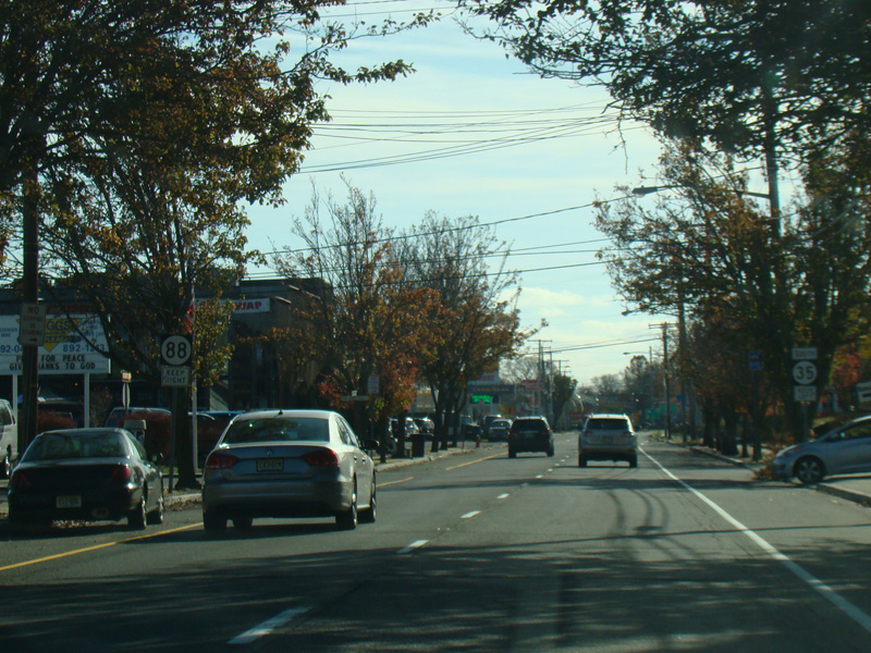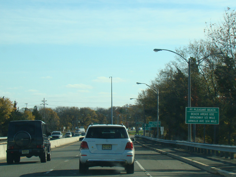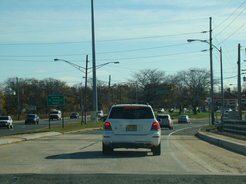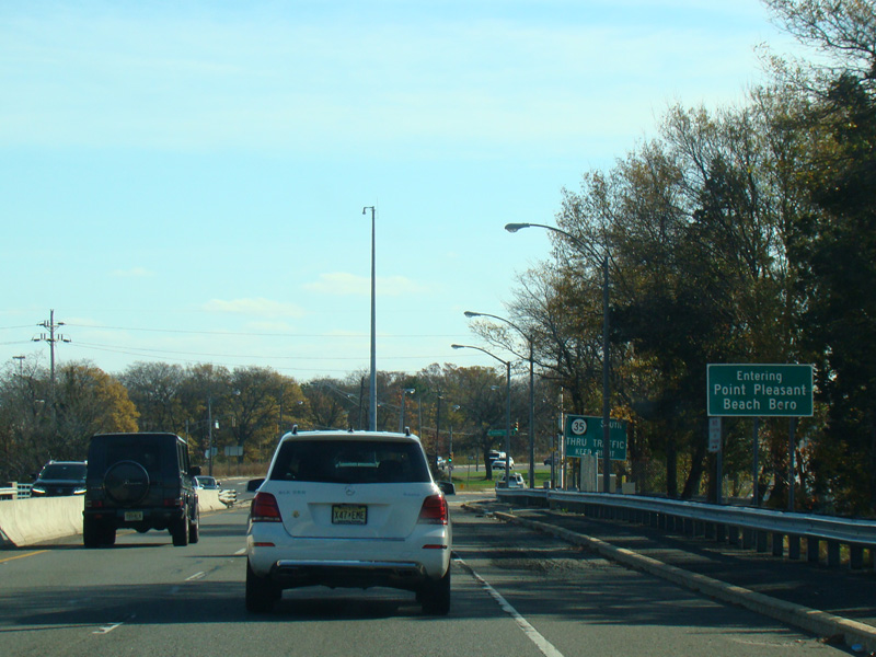 Welcome to Point Pleasant Beach! NJ 35 splits into a pair of one-way streets. There are traffic lights at Broadway Avenue (CR 635), McLean Avenue, Arnold Avenue, and Atlantic Avenue.