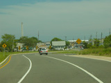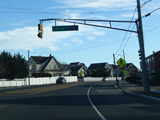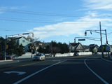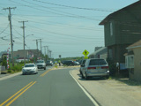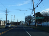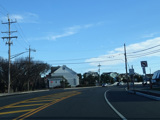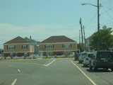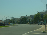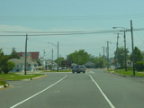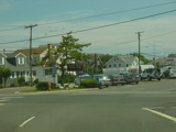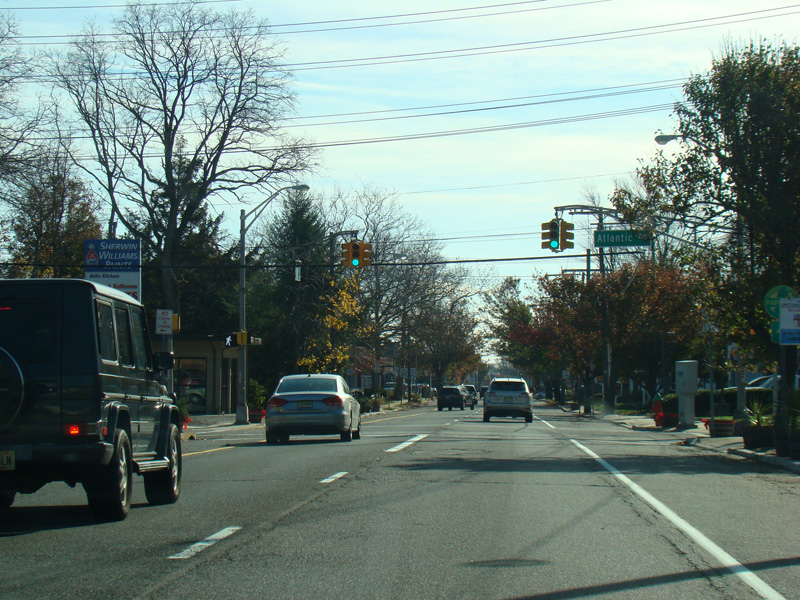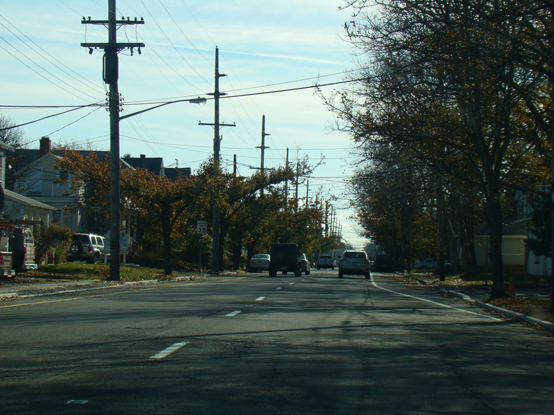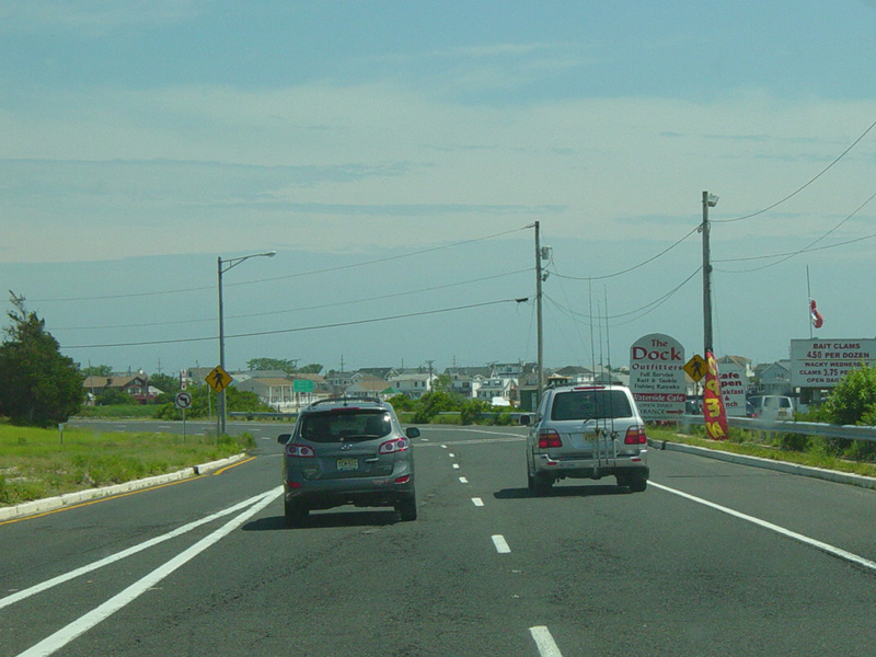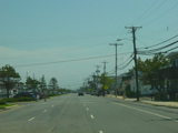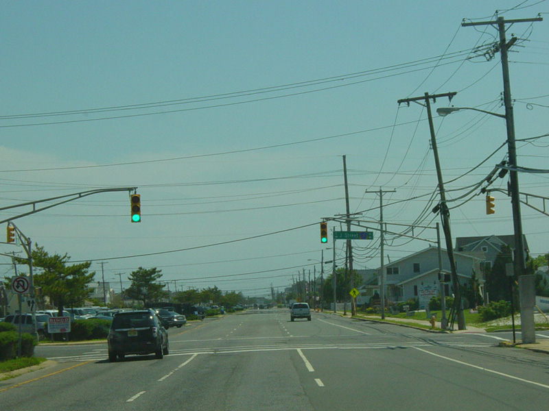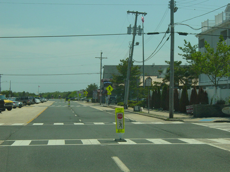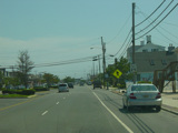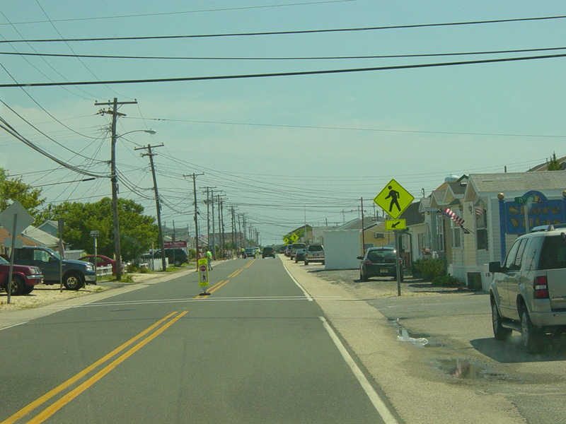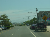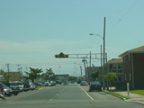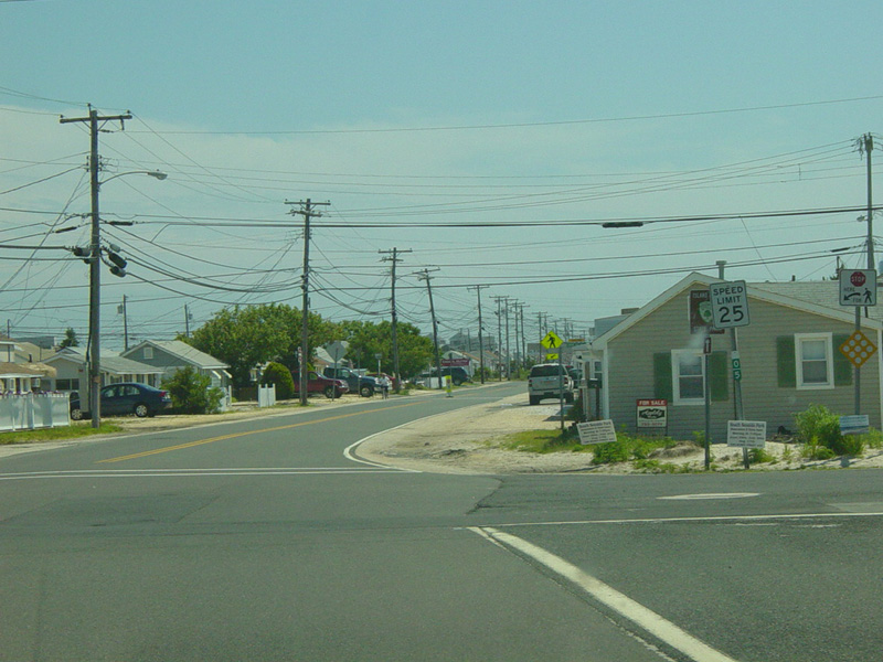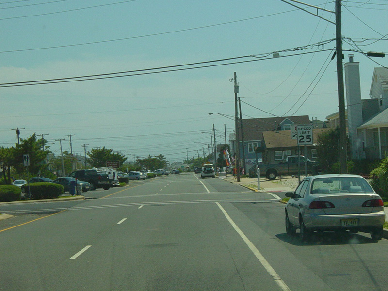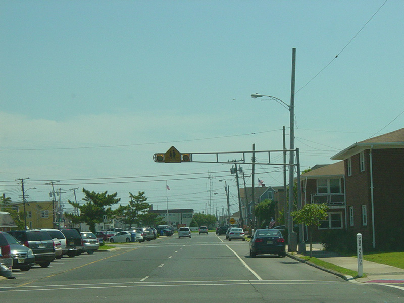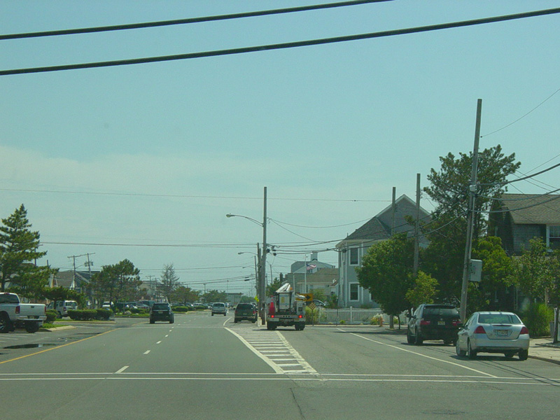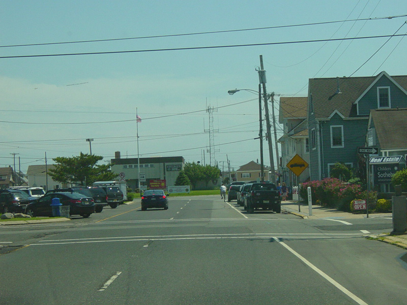 The road widens slightly in this area. Seaside Park Borough Hall is located in the middle between the eastbound and westbound lanes.