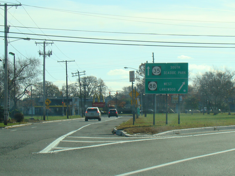 Ocean Road (NJ 88) begins on the right. Bear left to stay on NJ 35.