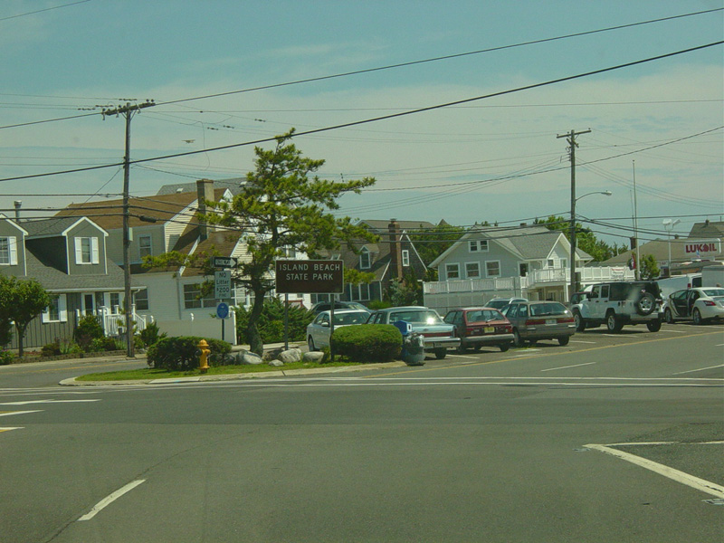 Central Avenue widens and becomes a divided road with parking in the median again. NJ 35 ends just ahead at the entrance to Island Beach State Park. There is no signage for the end of the route.