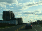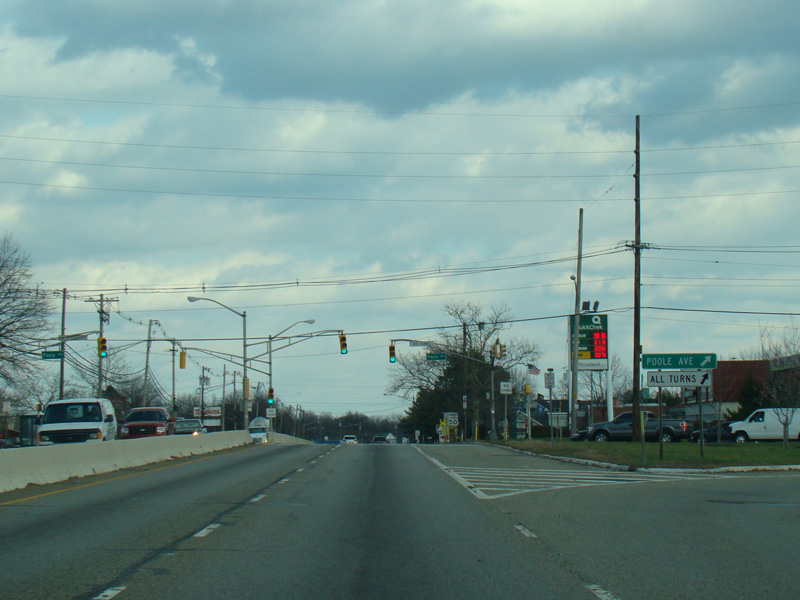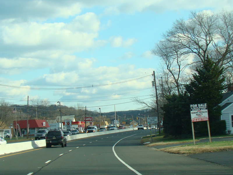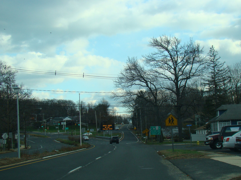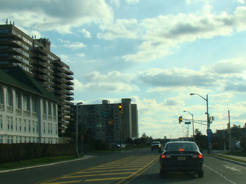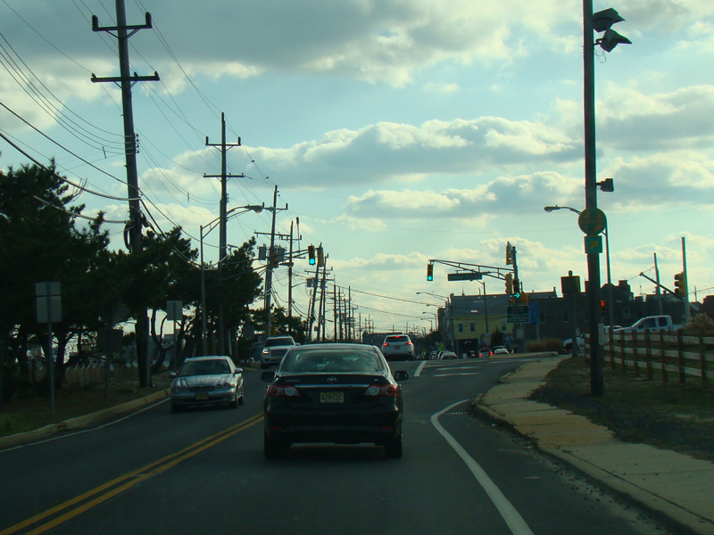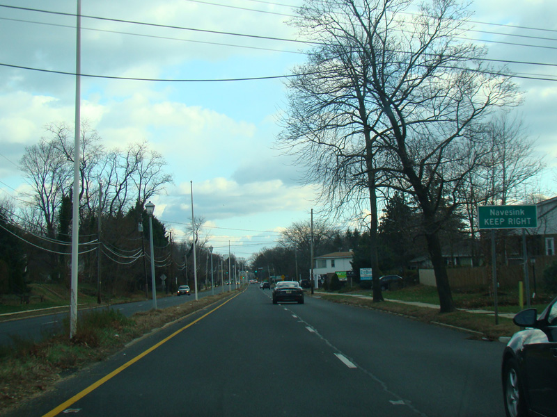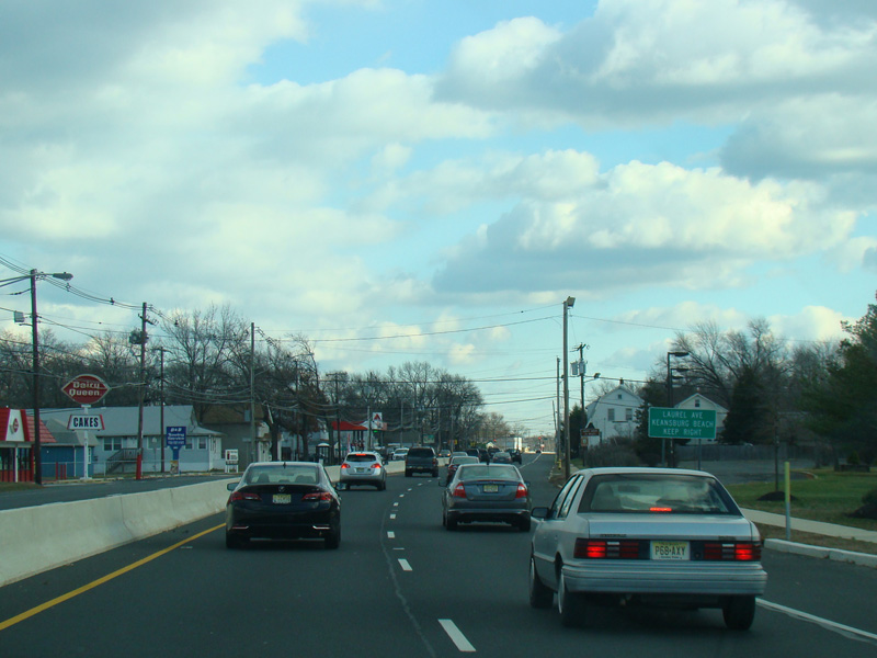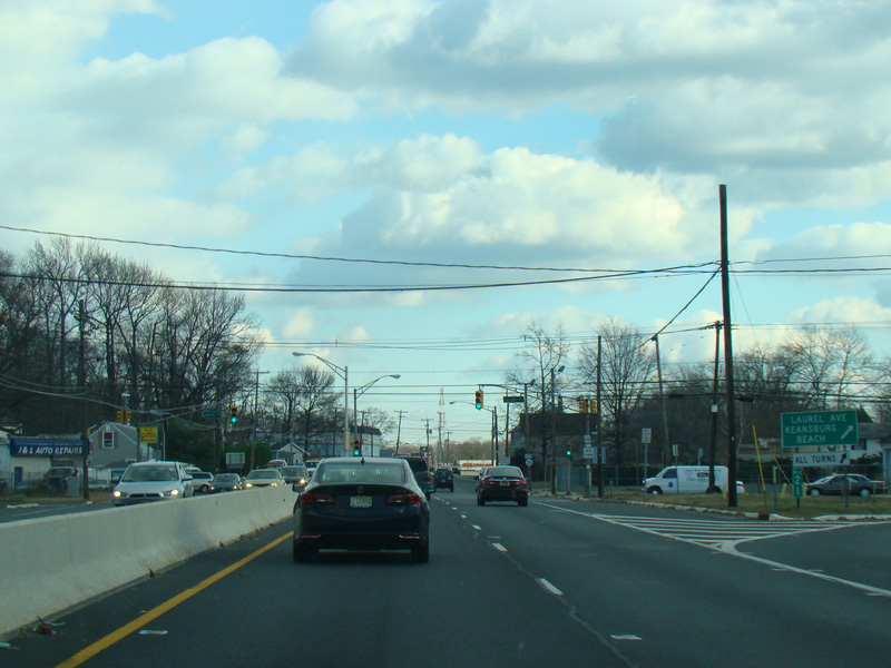 In Long Branch, Ocean Avenue widens to become a four-lane divided road called Ocean Boulevard. There is a traffic light at Avenel Boulevard.