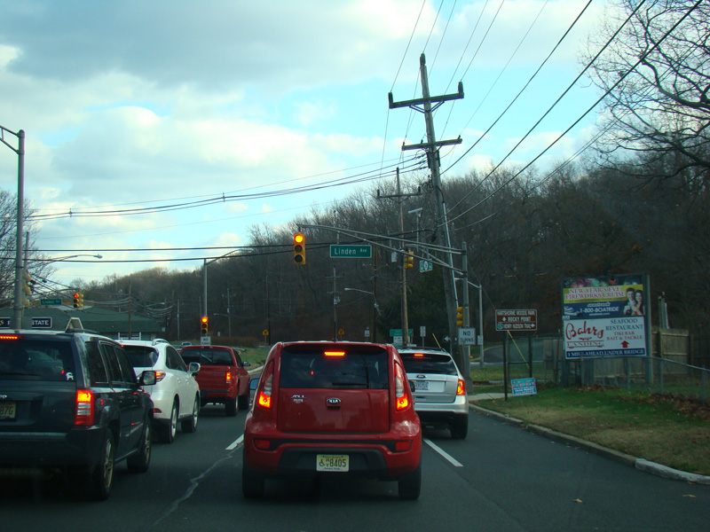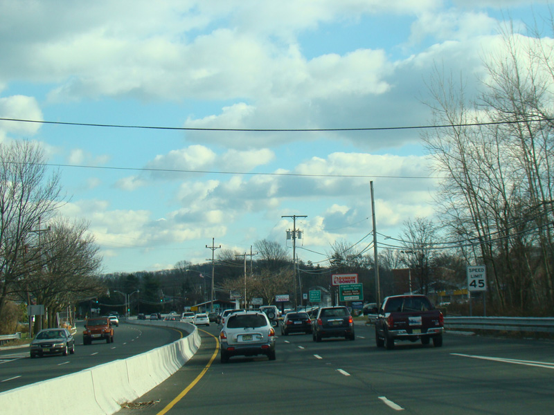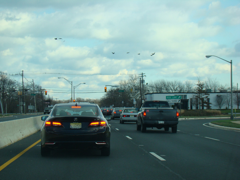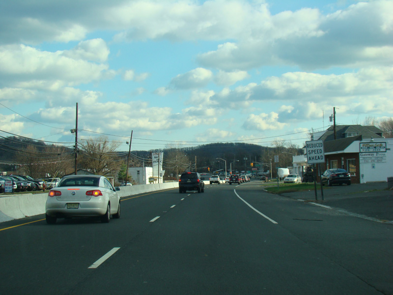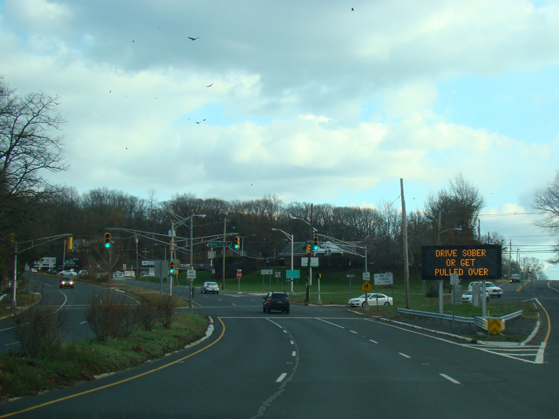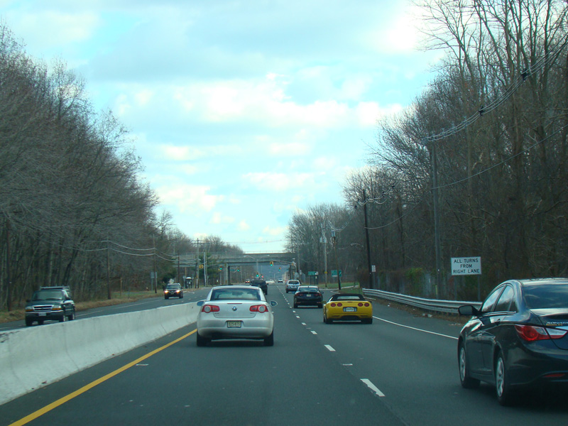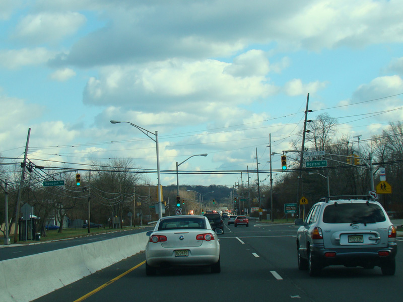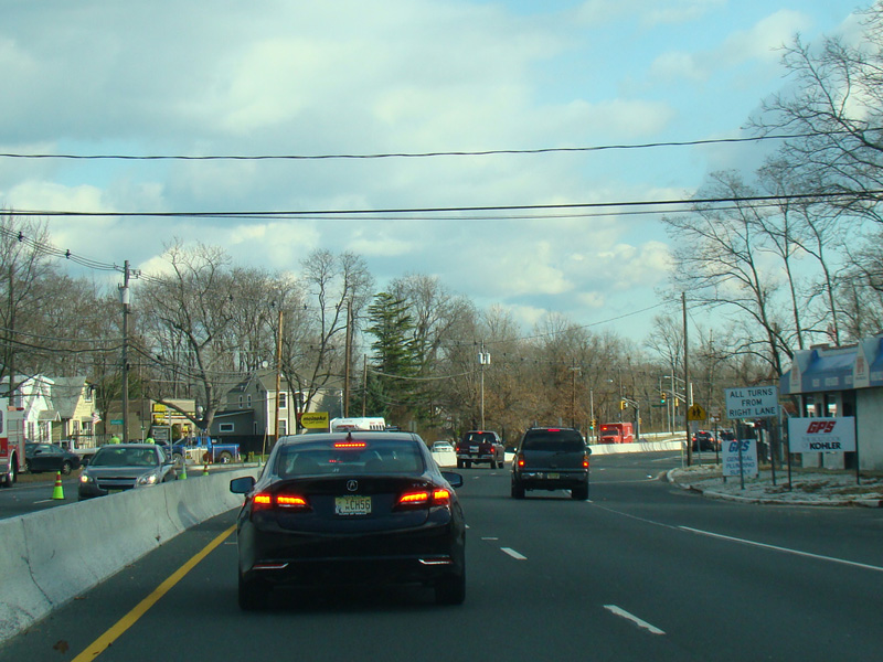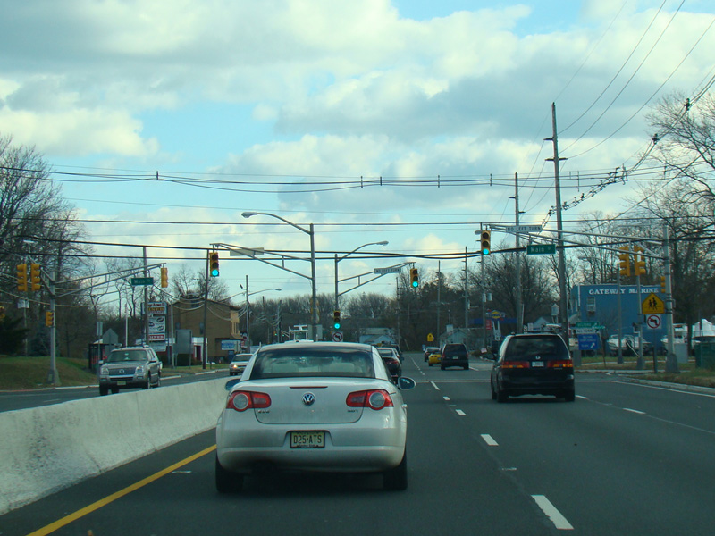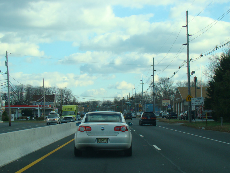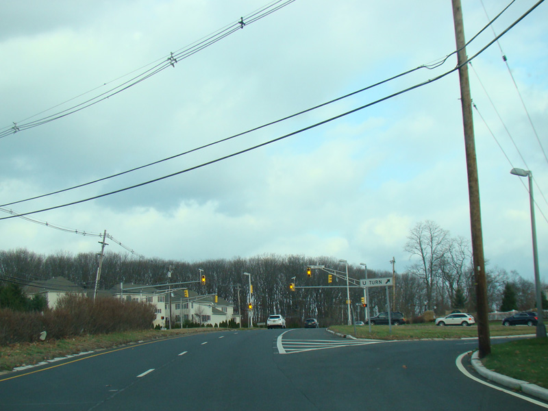 There is a traffic light at Stone Road (CR 6). No turns are allowed when travelling in this direction.