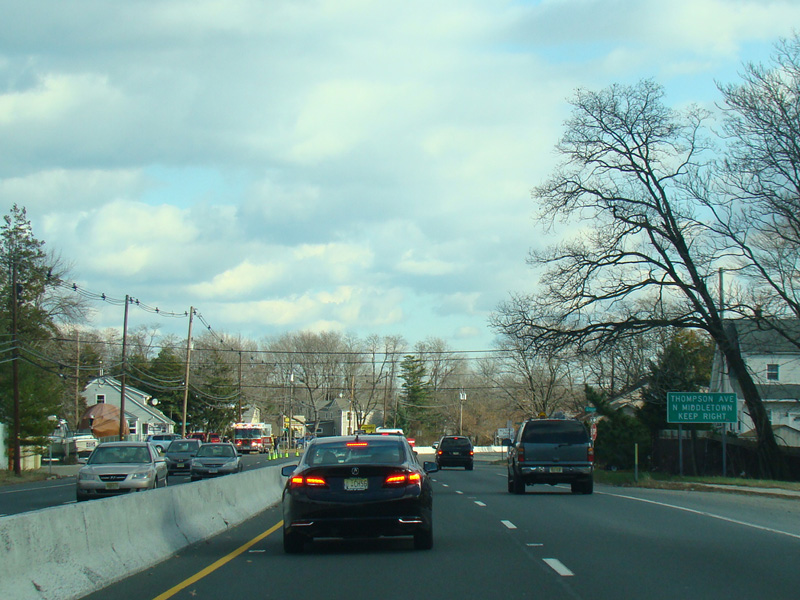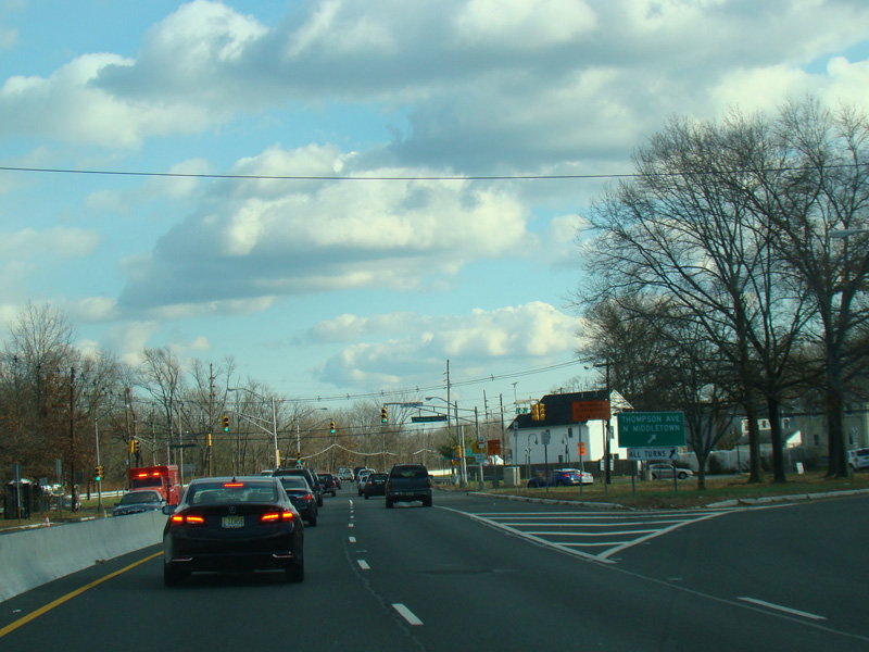 There is a traffic light with jughandles at Middle Road (CR 516).