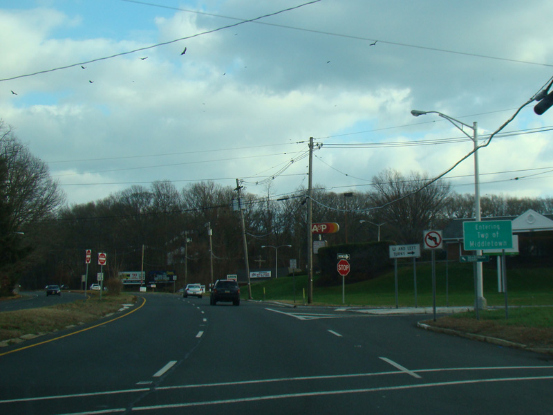Leonardville Road (CR 516) begins on the right at a traffic light.
