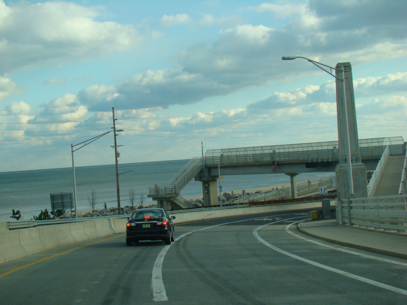 There is a bridge over the Shrewsbury River to Sea Bright. The view of the Atlantic Ocean while crossing the bridge is spectacular. At the end of the bridge, there is an exit for Sandy Hook.