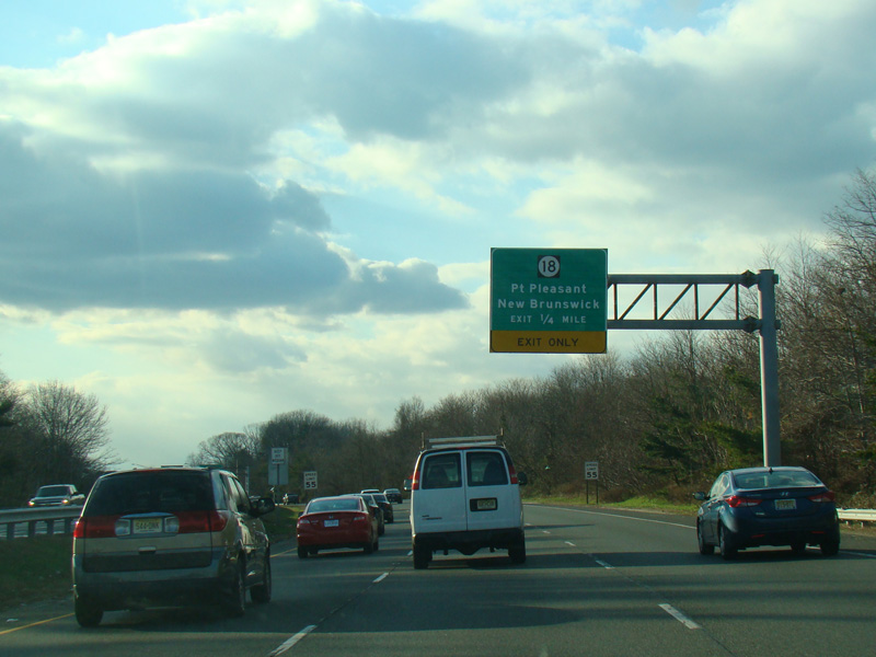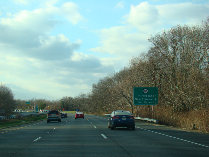 There is a traffic light at Grant Avenue, followed by an exit for NJ 18.