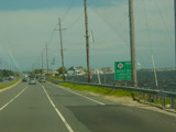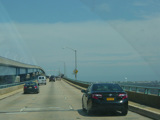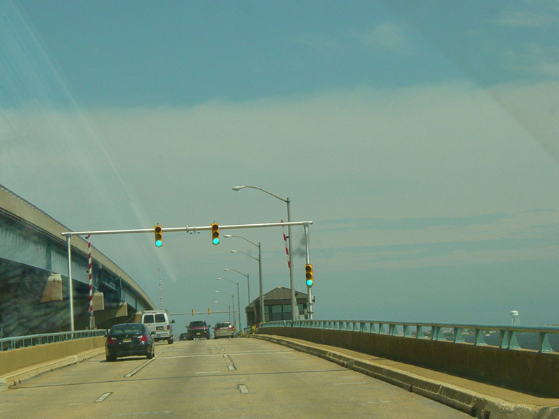 A pair of bridges carries NJ 37 across Barnegat Bay to Seaside Heights. Eastbound traffic uses the Thomas A. Mathis Bridge, while westbound traffic uses the J. Stanley Tunney Bridge.