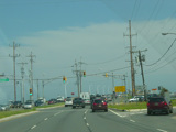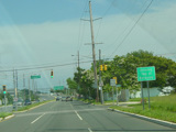 NJ 37 runs east as a six-lane divided road. There is a traffic light with jughandles at Douglas Street.