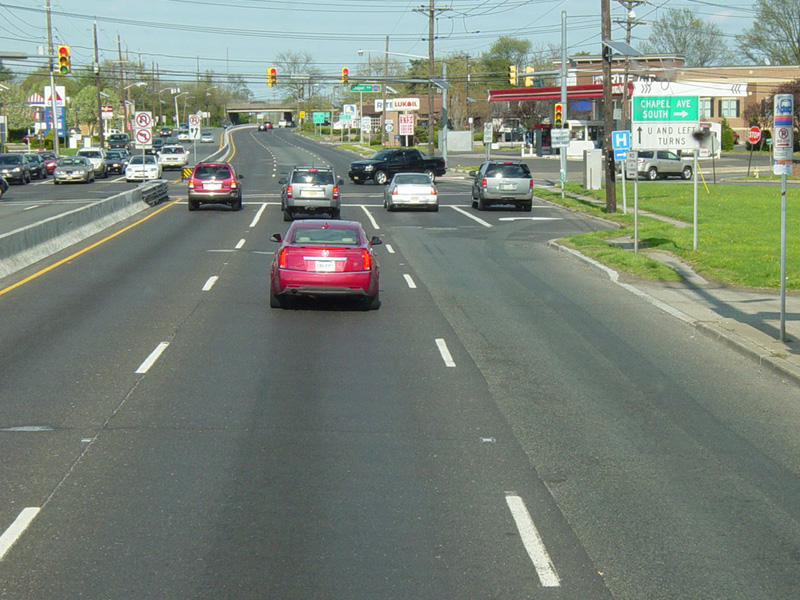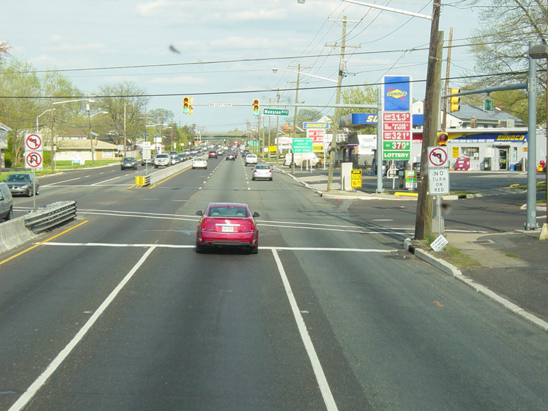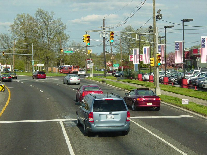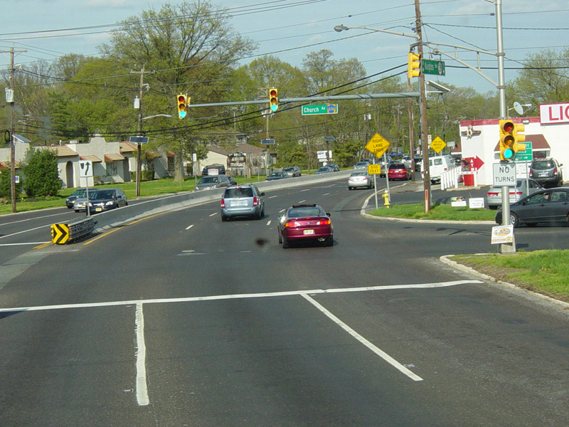 There are traffic lights at Chestnut Street, Cooper Landing Road (CR 627), and Church Road (CR 616).
