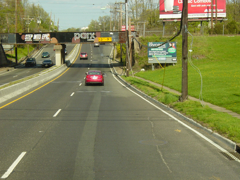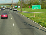 Kaighns Avenue begins at Admiral Wilson Boulevard (US 30) and Crescent Boulevard (US 30/US 130) in Pennsauken. There is an exit for Browning Road and Marlton Pike west. The road then splits. Bear right for Marlton Pike (NJ 70) east. Bear left to stay on NJ 38.