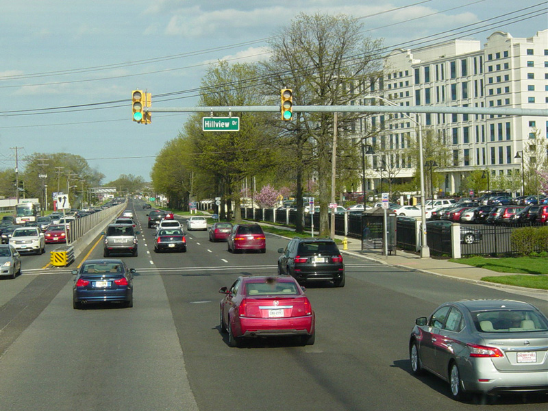There is a traffic lights with jughandles at Cherry Hill Mall Drive and Hillview Drive.