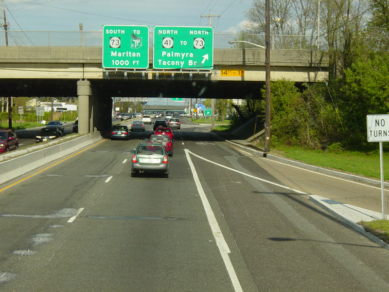 There is an interchange with Kings Highway (NJ 41) and NJ 73.