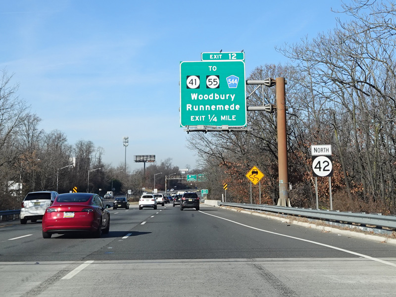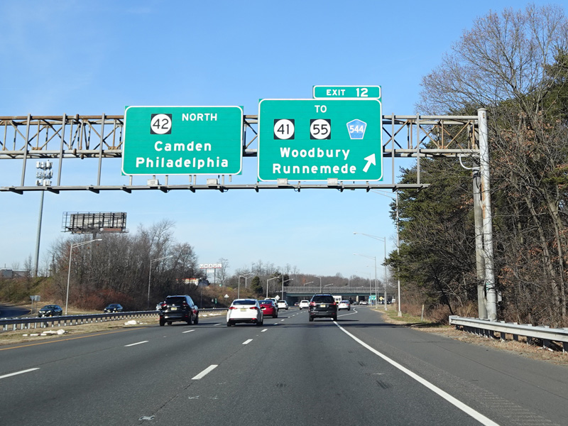 Exit 12 is for Hurffville Road (NJ 41), the Cape May Expressway (NJ 55), and Clements Bridge Road (CR 544).