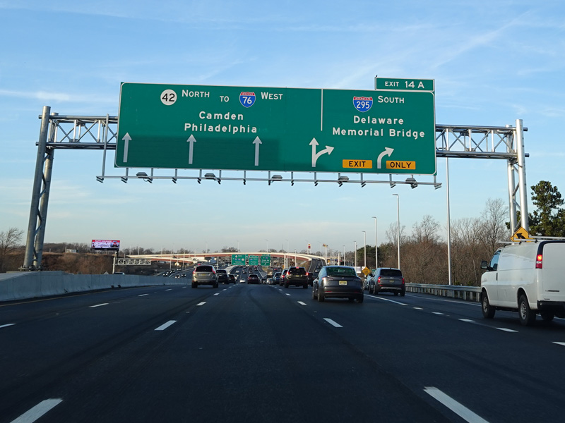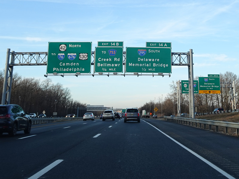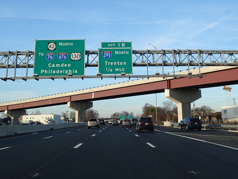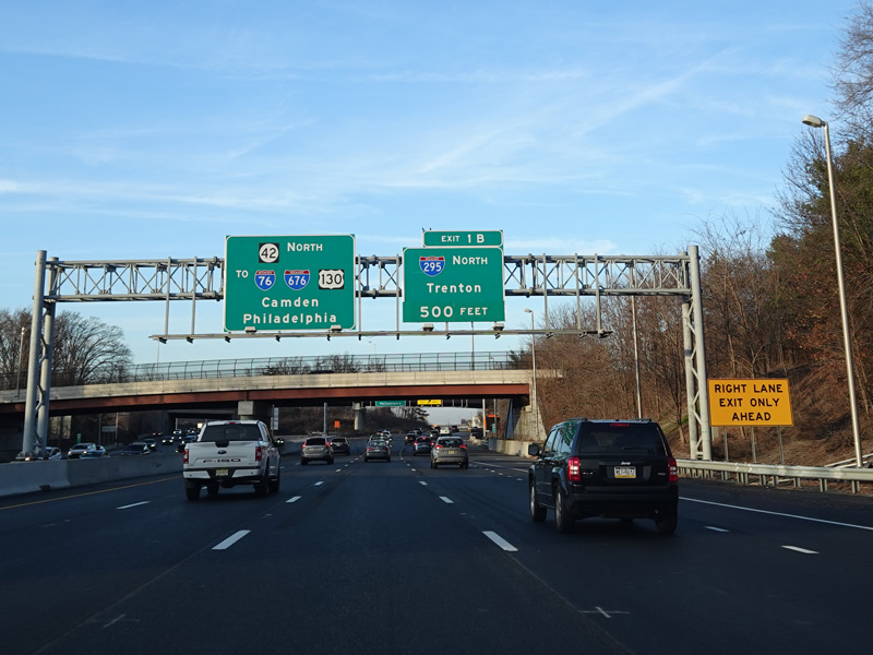 The North-South Freeway crosses I-295 and changes designation to become I-76. There is an exit for I-295 north. It is marked at exit 1B for consistency with the exit numbering scheme on I-76.