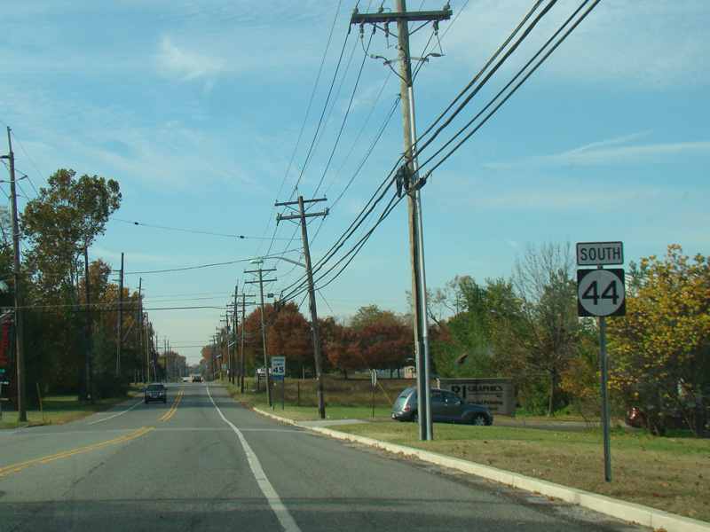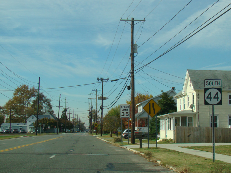 In Gibbstown, NJ 44 is known as West Broad Street. There is a flasher at School Street and a traffic light at Repauno Avenue.