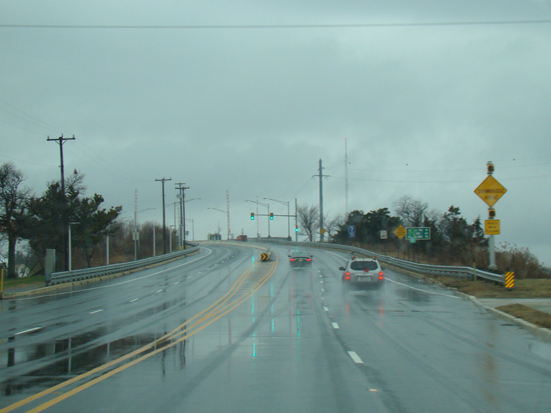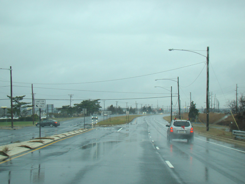 On the other side of the bridge, NJ 47 becomes Wildwood Boulevard, a four-lane divided highway.