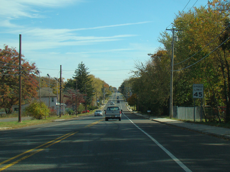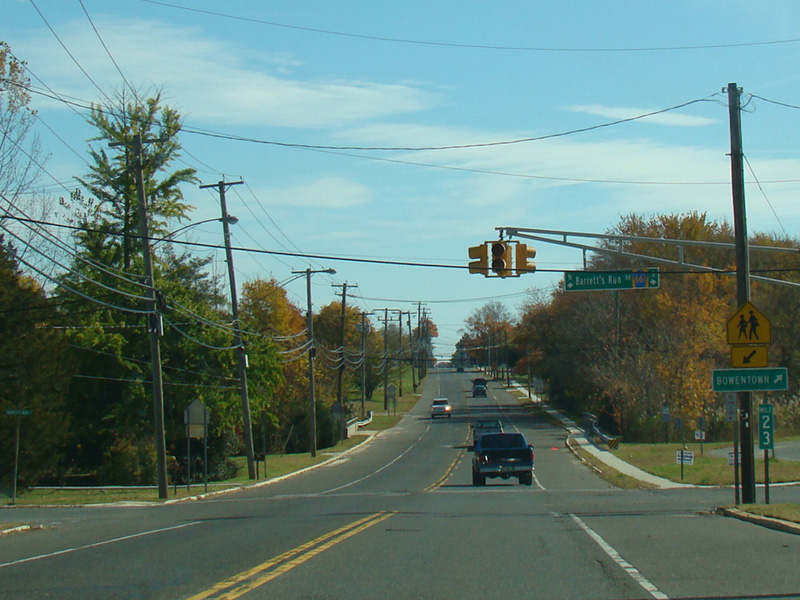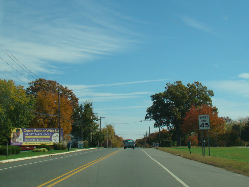 Buckshutem Road (CR 670) splits off to the right. Bear left to stay on NJ 49. Route signage at this intersection is less than ideal.