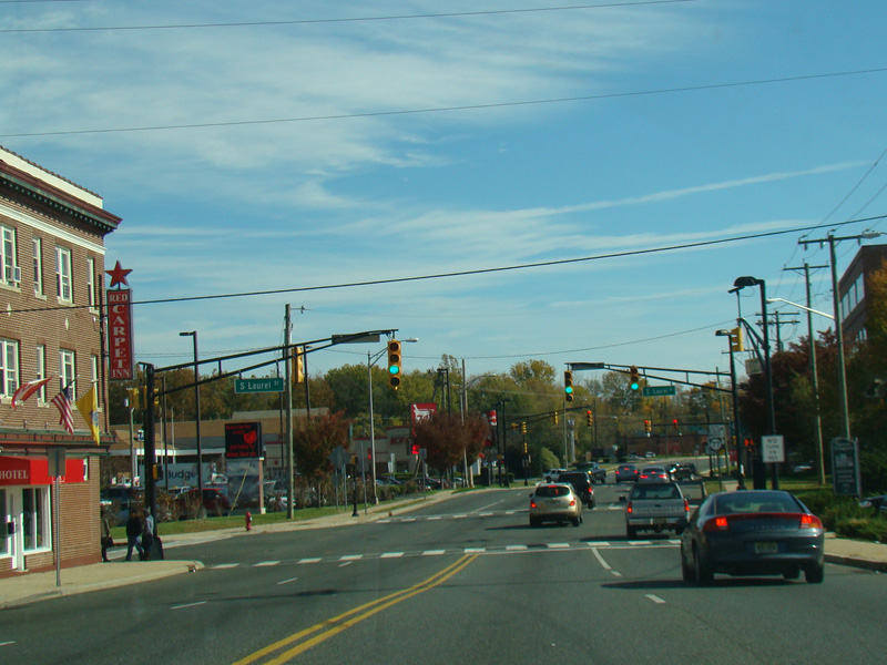 NJ 49 widens to four lanes. Here, it is known as West Broad Street. There are traffic lights at Fayette Street (CR 650), Franklin Street, Atlantic Street (CR 697), and South Laurel Street.