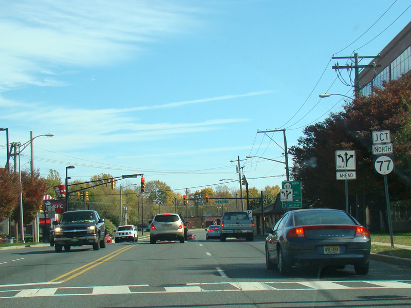 NJ 77 begins on the left at a traffic light. South Pearl Street (CR 609) is to the right.