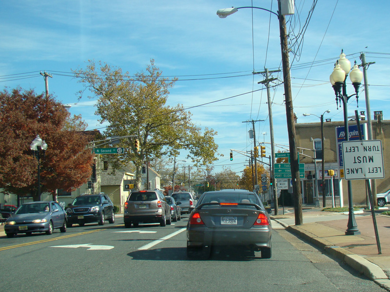 There is a traffic light at NJ 47. Turn left onto North Second Street to go north or right onto South Second Street to go south.