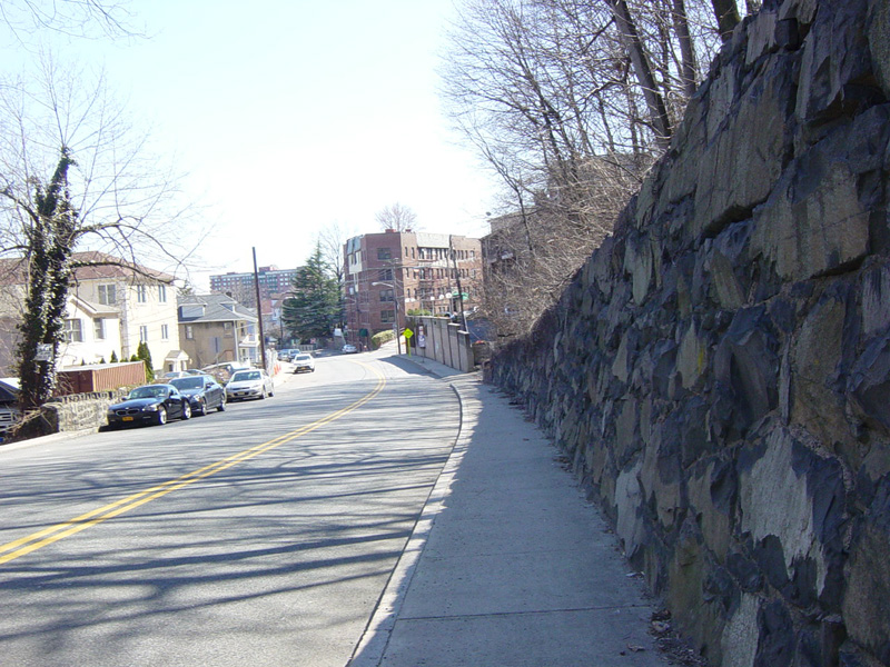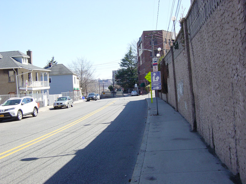 Palisade Avenue runs south as a four-lane undivided road. There is a traffic light at Bridle Way.