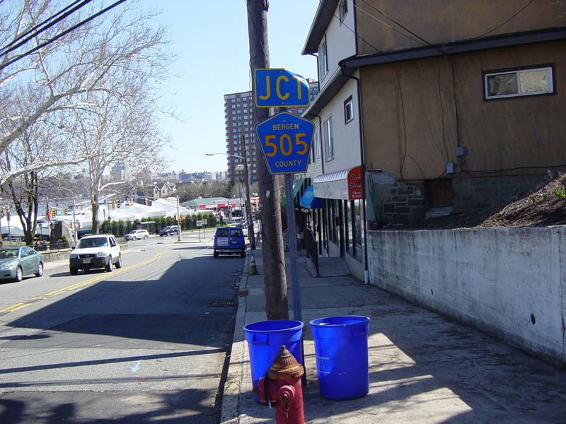 NJ 5 ends at a traffic light at River Road (CR 505) in Edgewater. Turn left to go north or right to go south.