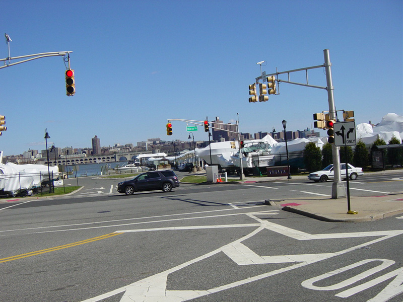 Turn left at this traffic light to stay on NJ 5. Palisade Avenue continues straight ahead as the mostly unsigned CR 27.