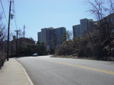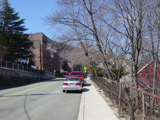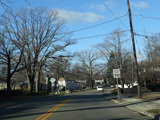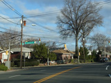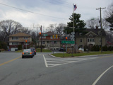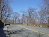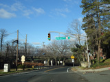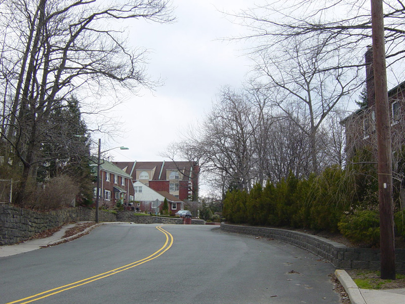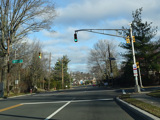 Glen Road runs south and then curves to the west. There is a traffic light at Brinkerhoff Avenue.